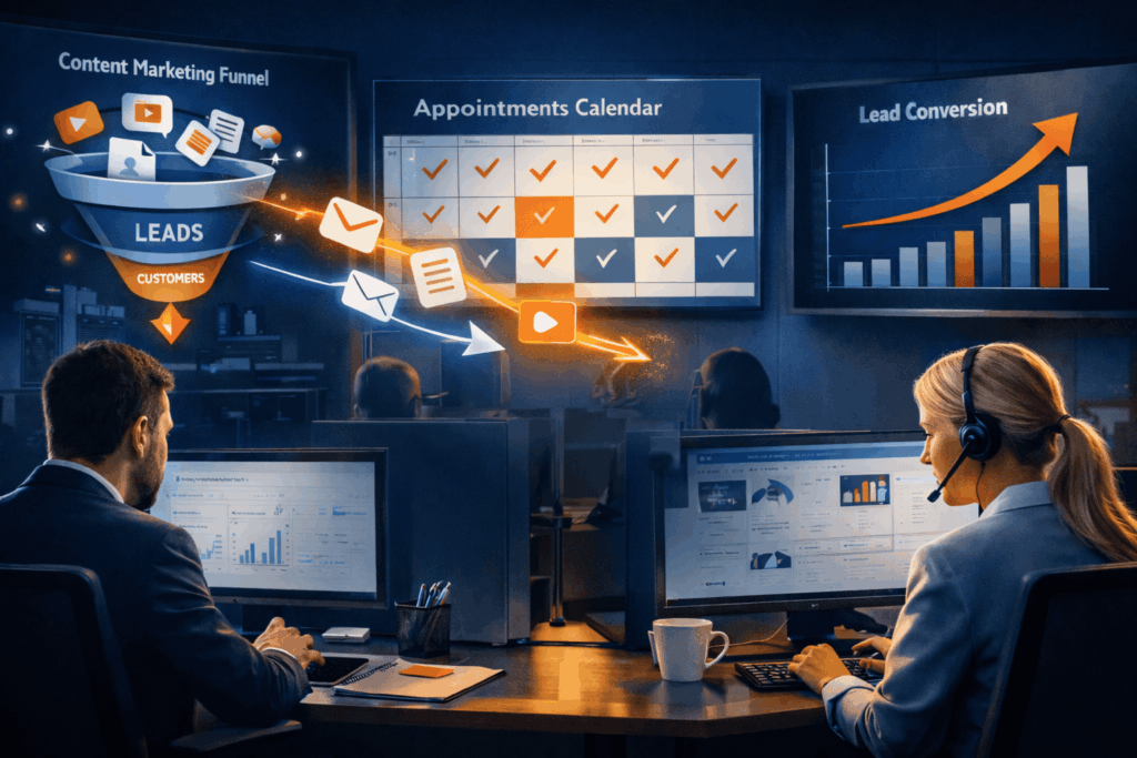 Content alone doesn’t book appointments. You need a complete system that bridges the gap between awareness and action. Great content gets attention, but systematic follow-up books meetings.